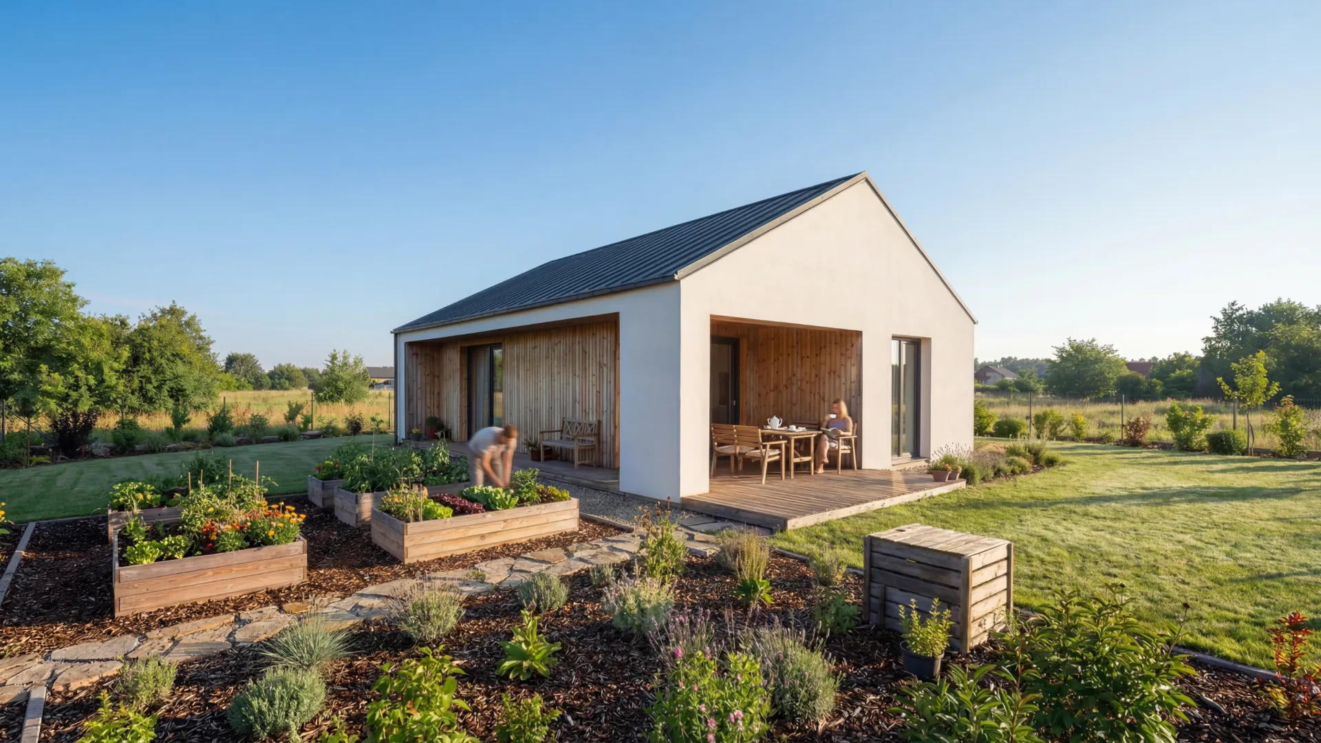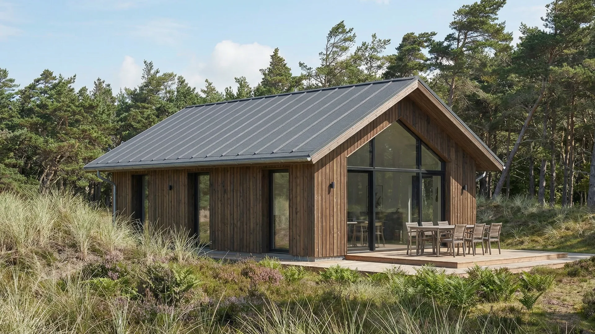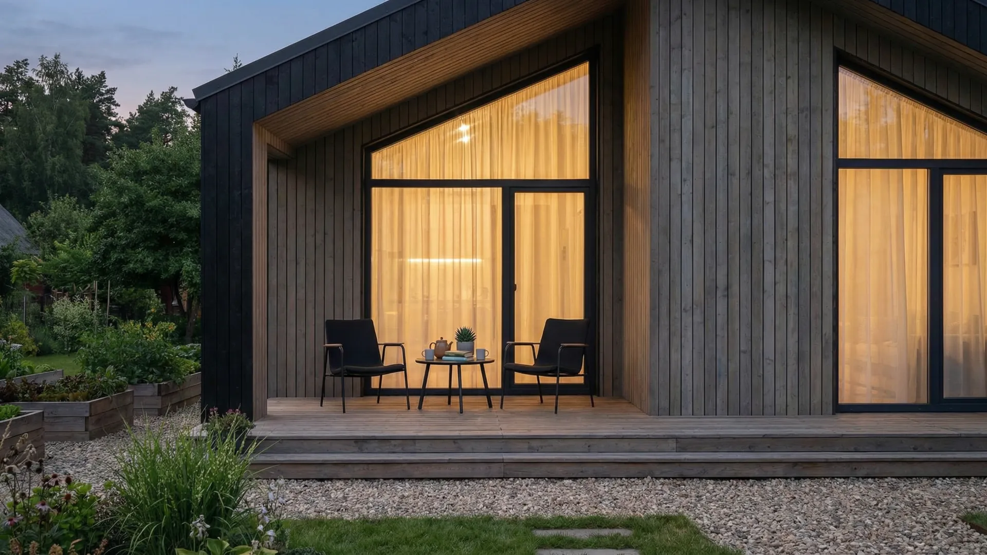 Tai reiškia mažiau dokumentų, trumpesnį procesą ir mažesnes išlaidas. 50 m² — tai ne mikroskopinis namelis: čia telpa svetainė su virtuve, du miegamieji ir vonios kambarys. Pakanka sodui, poilsiui ar kompaktiškam gyvenimui.
